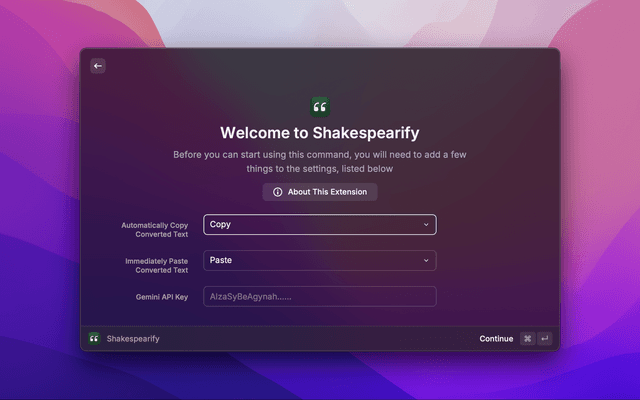 When you first run the extension, you will be asked a few configuration options. This is required to ensure proper functioning of the extension.