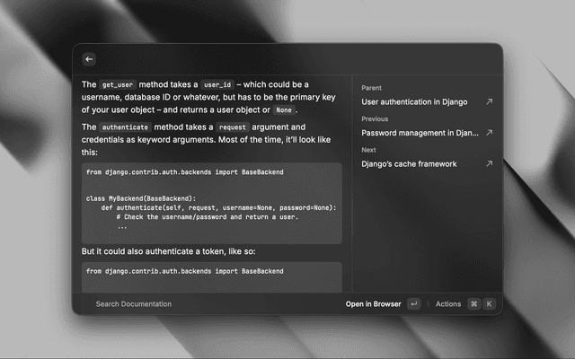 Navigate and search through Django documentation