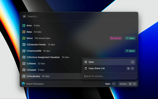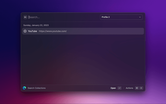 Open profile support is limited to opening tab in new profile window. You can customize default tab opening behaviour in Preferences.