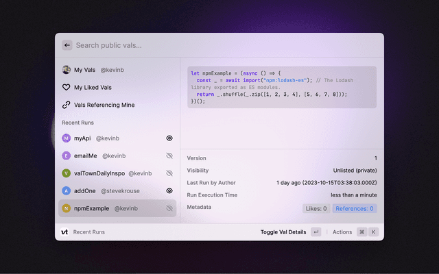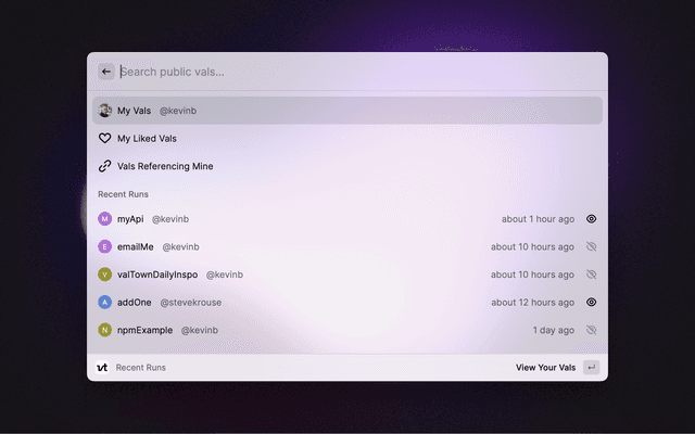View and run Vals from Raycast.