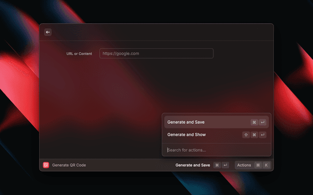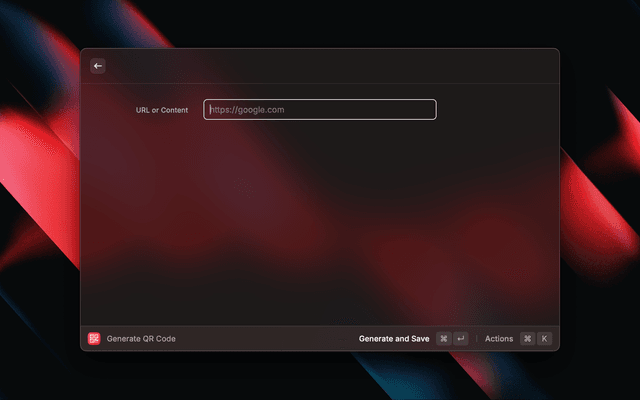 Generate a QR code from a URL in PNG or SVG format that will be automatically opened.