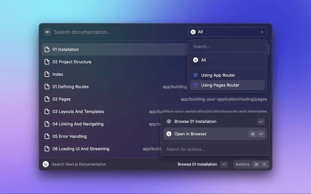 Efficiently search NextJS documentation from Raycast.