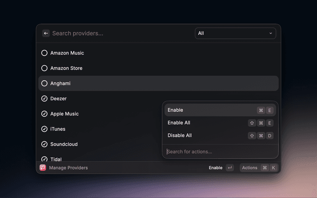 Convert a music link to another provider. For example you can convert Spotify links to apple music links.