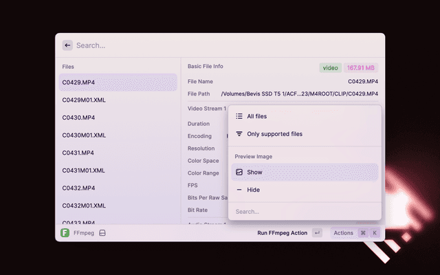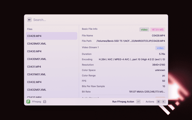 Fast media analysis and manipulation using FFmpeg.