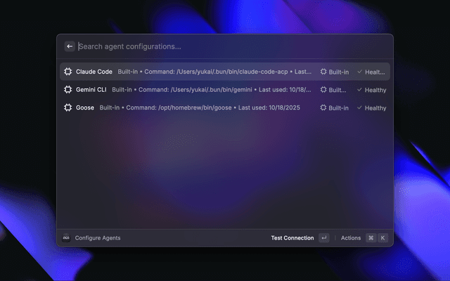 Connect to AI agents via Agent Client Protocol for coding assistance directly from Raycast.