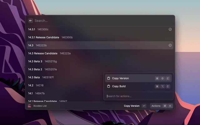 This extension uses XcodesOrg's xcodes CLI to provide a list of available Xcode distribution.