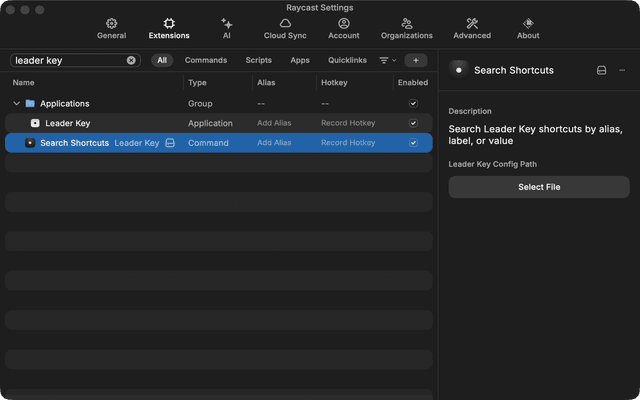 Default Path: ~/Library/Application Support/Leader Key/config.json