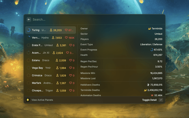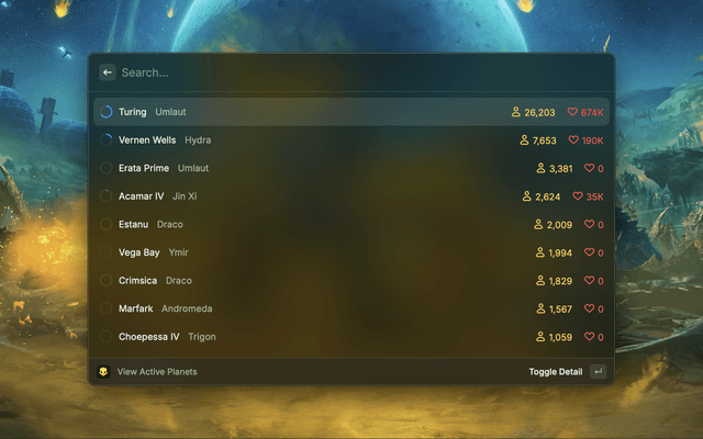 Nor extension or author is affiliated with ArrowHead Studios. Extension uses official game API and do not requires authentication.