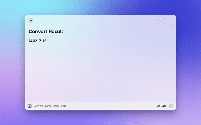 Converts Shamsi (Jalali) calendar dates to/from Gregorian calendar