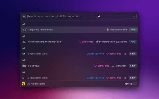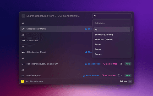 Departures for Berlin public transport stations using BVG (Berliner Verkehrsbetriebe) real-time traffic data
