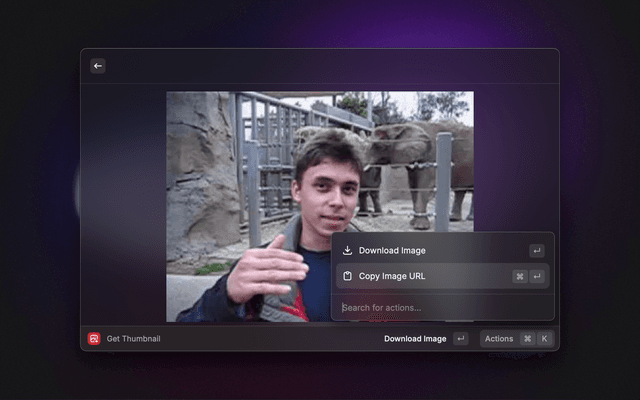 View a YouTube video's largest available thumbnail, then download it or quickly copy its URL.