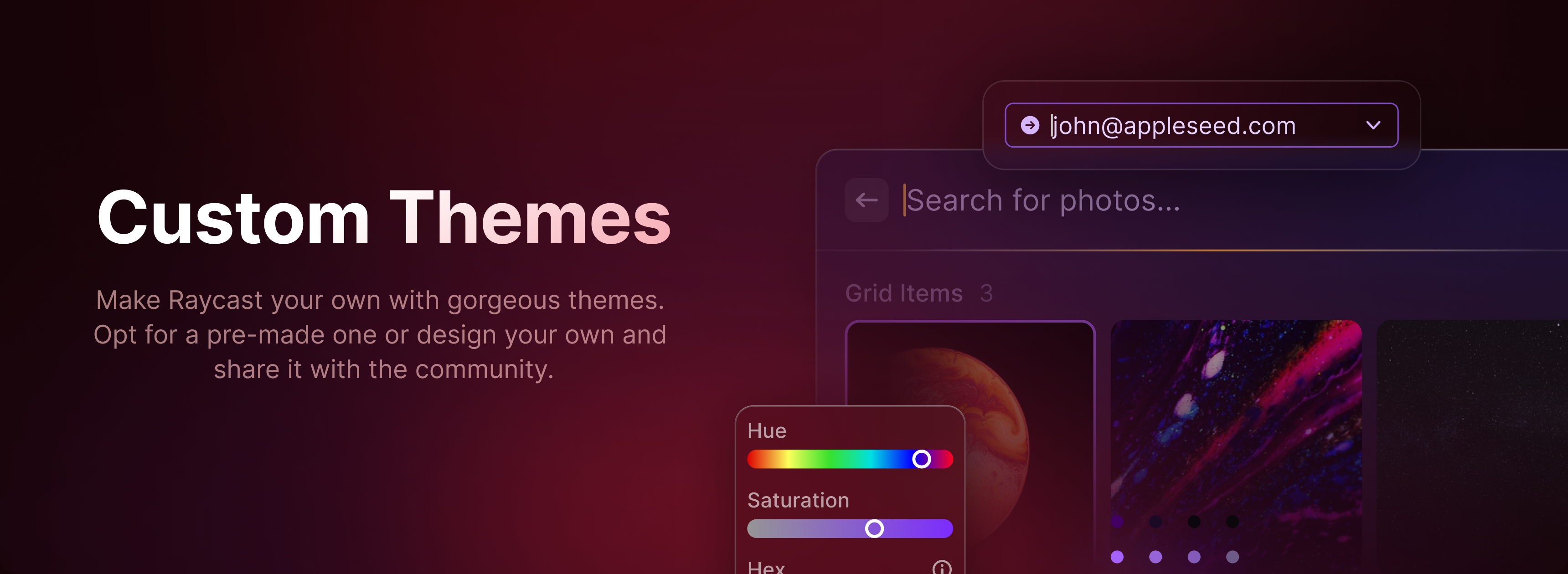 Software is no longer just a tool for work; it’s also a reflection of our personalities. And with Custom Themes, you can personalize Raycast to make it your own.