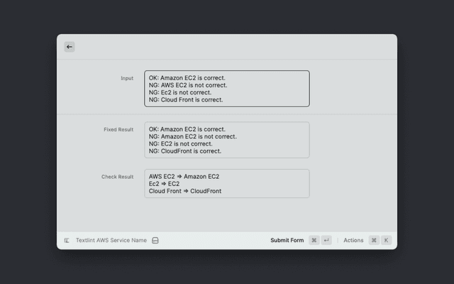 Checks that the text does not contain typos in the AWS service name. Correct the service name at the same time.