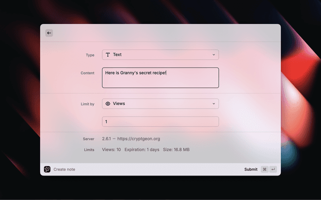 Official Raycast extension for cryptgeon.