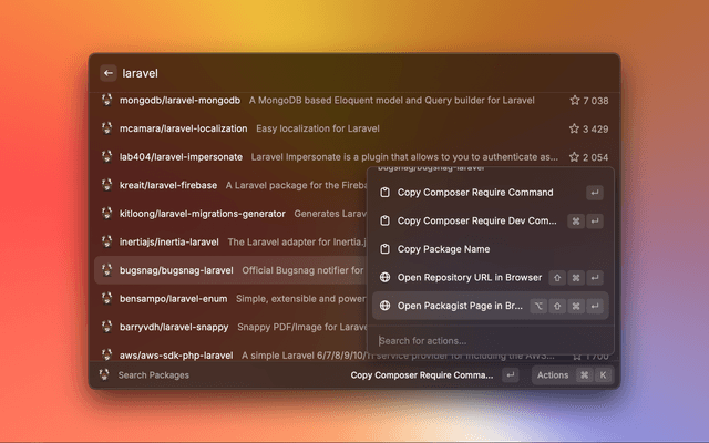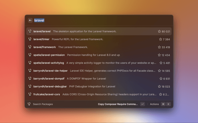 This extension allows you to search through the Laravel docs directly from Raycast.