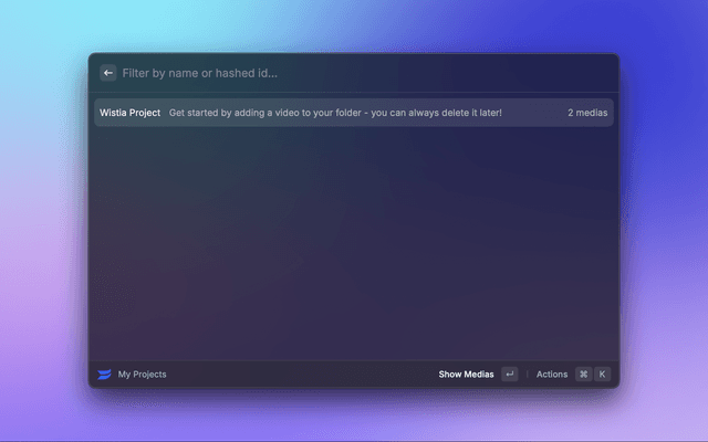 Before you can search through your Wistia projects and medias, you need to provide your Wistia API key.