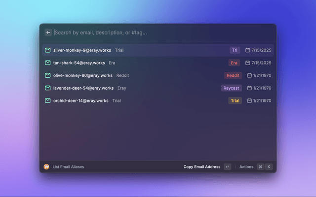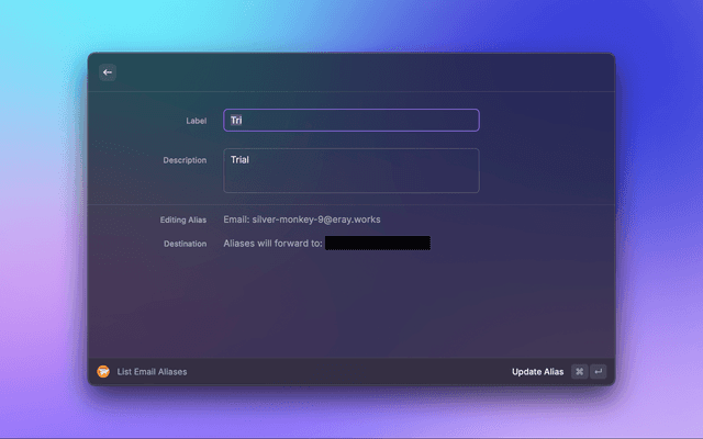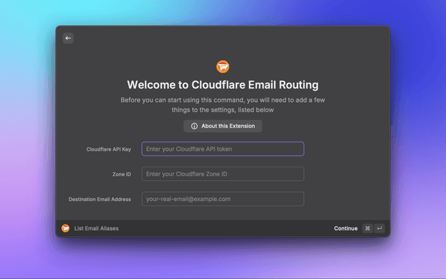 A Raycast extension that allows you to create, list, edit, and delete Cloudflare email aliases directly from Raycast.