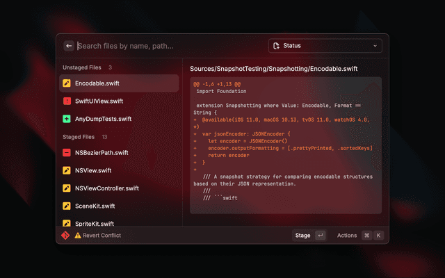 β + 1 to go to Statusβ + 2 to go to Commitsβ + 3 to go to Branchesβ + 4 to go to Tagsβ + 5 to go to Remotesβ + 6 to go to Stashesβ + 0 to go to FilesYou can create a Quicklink to open a specific repository without needing to select it in the Manage Git Repositories list.