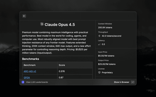 LLM Stats for Raycast