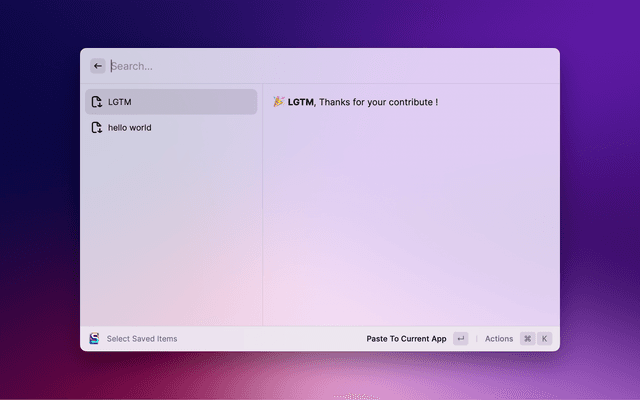 Save some items (eg. quick replies) and insert or copy them.