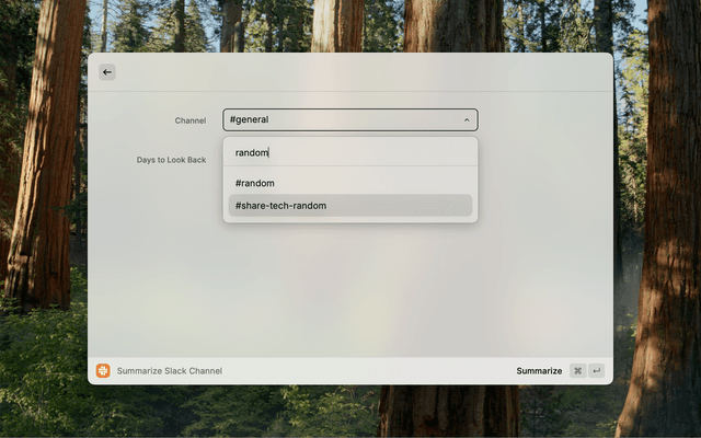 Summarize any Slack channel or thread directly from Raycast using OpenAI. Perfect for catching-up after vacations, keeping stakeholders in the loop, or turning noisy discussions into succinct, bullet-point briefs.