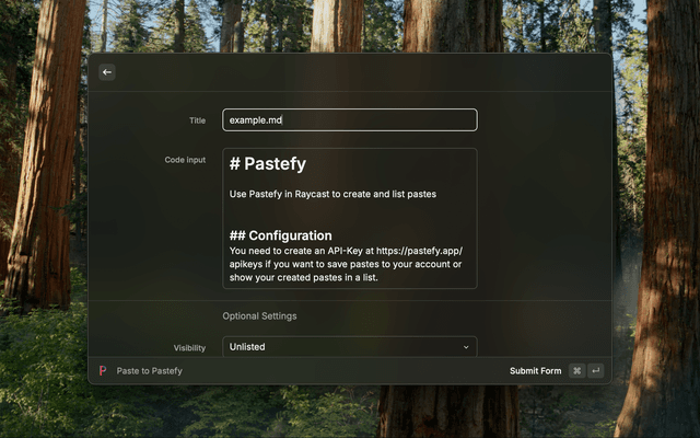 Use Pastefy in Raycast to create, list and delete pastes.