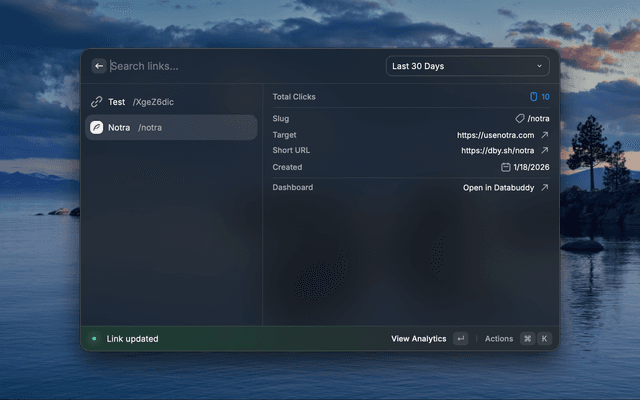 Databuddy is a privacy-first web analytics platform — view your websites, links, feature flags, and funnels from Raycast.