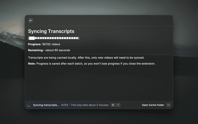 The tool searches your transcripts and returns relevant excerpts with timestamps and source video links.
