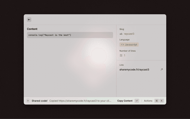 A Raycast extension allowing users to instantly share and display shared code-snippets, texts, links...