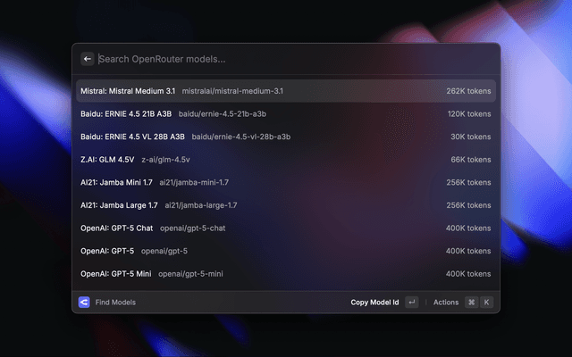 A Raycast extension to search and copy AI model IDs from OpenRouter.