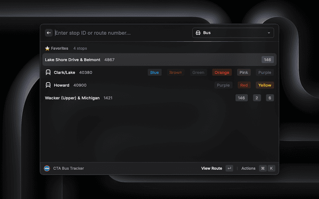 Note: This is an unofficial extension and is not affiliated with or endorsed by the Chicago Transit Authority. All transit data is provided by the CTA's public API services.