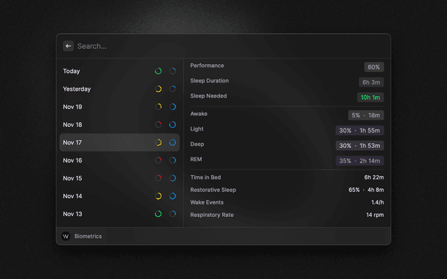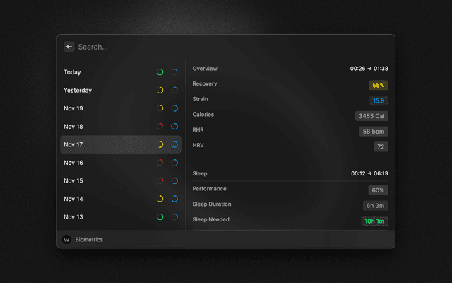 Displays your WHOOP overview.