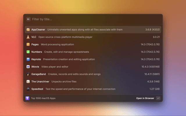 This extension scrapes lists of today's updates and the top 1000 popular apps from macupdater.net.