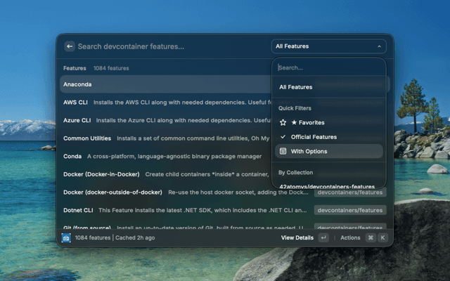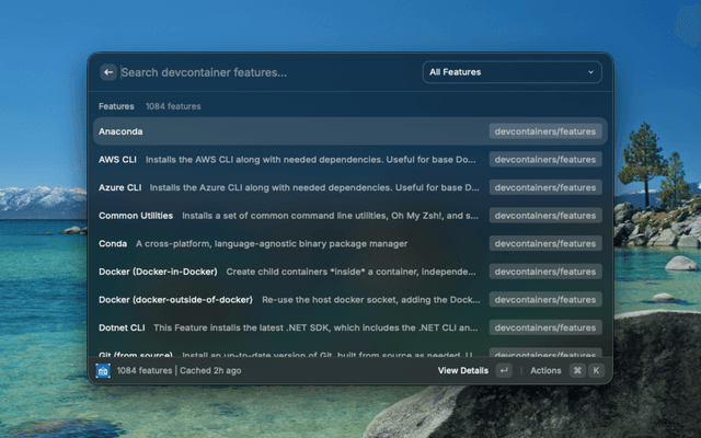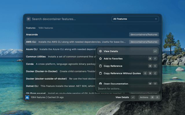 Search and browse DevContainer features from the official registry.