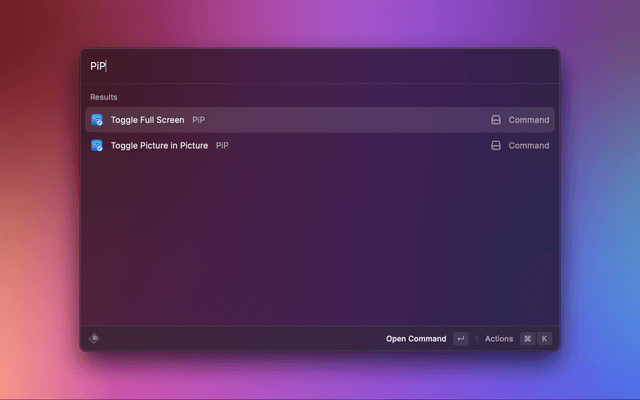 To use PiP just run the Toggle Pip command when you're watching to an HTML5/IINA video (Note: You need to interact with the video once. If it's autoplaying just pause and play again)