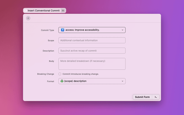 {emoji}{scope} {subject}{emoji}{scope}: {subject}{type}{scope}: {subject}Examples: