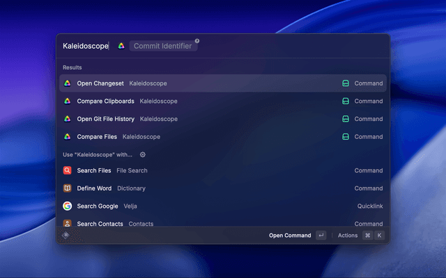 Compare Files (or Folders) selected in Finder, if Finder is frontmost, or up to six Files (or Folders) from the Raycast Clipboard History.