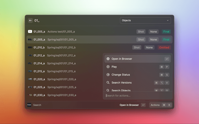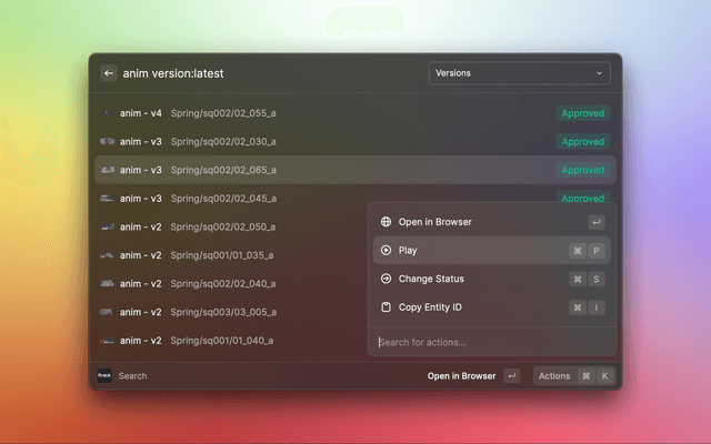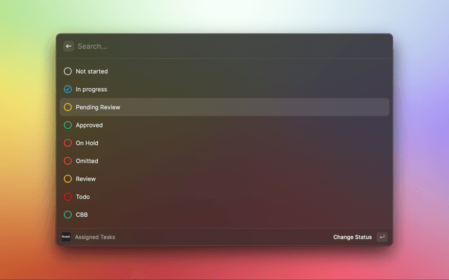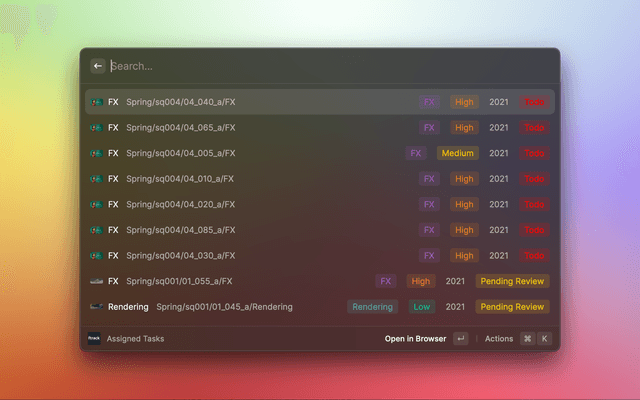 Raycast extension for ftrack Studio - Search and modify your tasks from your mac.