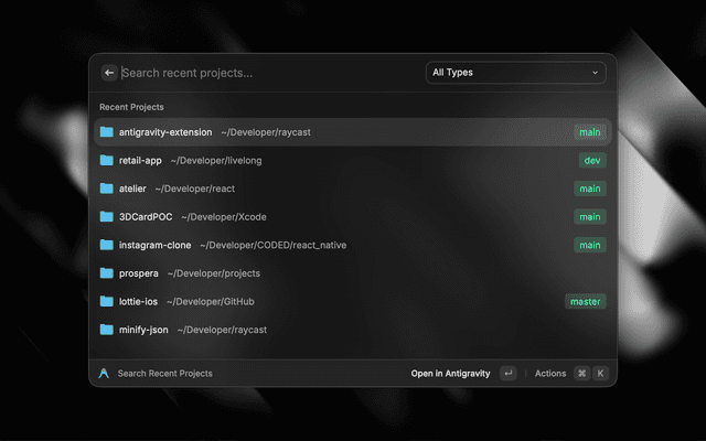 Control Cursor directly from Raycast - Search and open recent projects, handle extensions and commands.