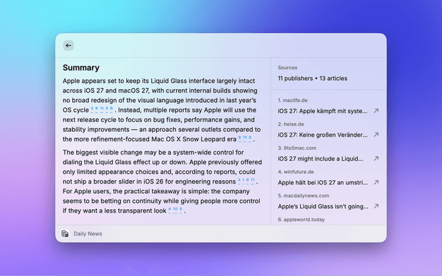 Read and explore Kagi News articles and sources seamlessly in Raycast.