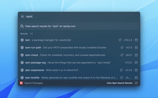 Raycast extension to search and favorite npm packages
