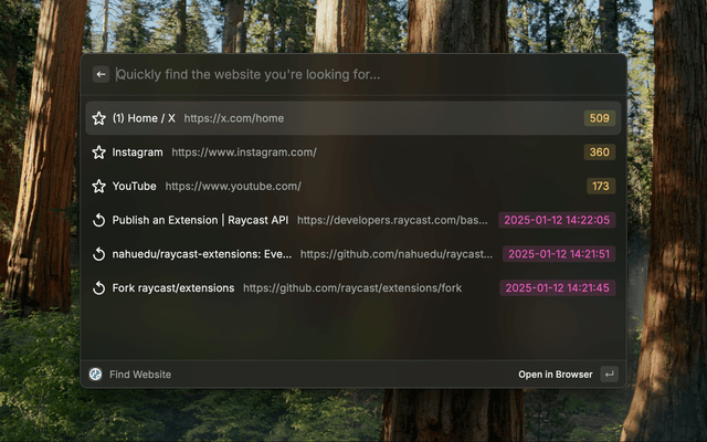 This extension queries your last visited and most visited webites so you can quickly get to where you want to go.