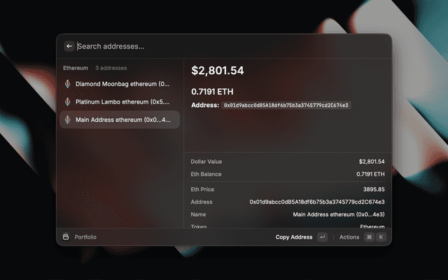 • Add Ethereum Address <address> <name?>: Add an Ethereum wallet address to your portfolio.