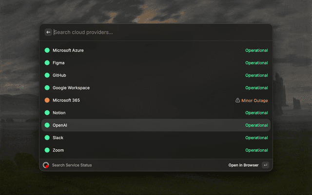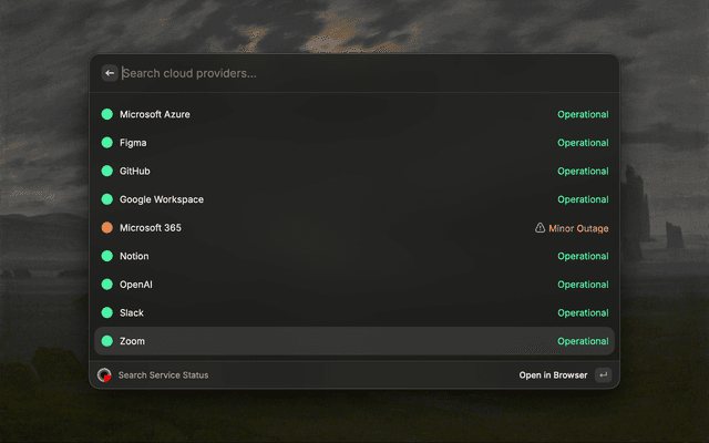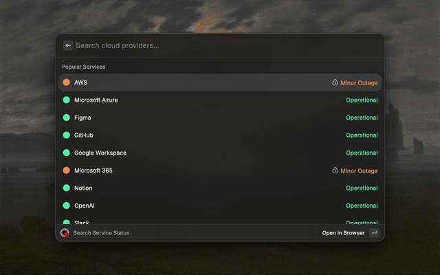 Search and check the status of services directly from Raycast, powered by IsDown.