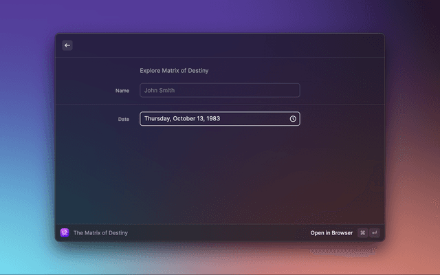 Enter Name: In the 'Name' field, input the name of the person whose Matrix of Destiny you want to explore.