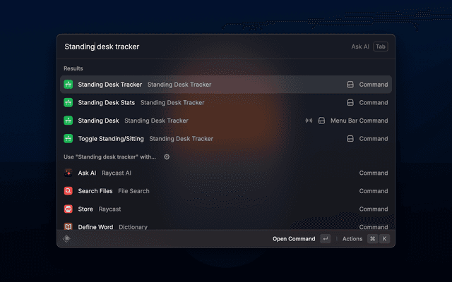 - Start Tracking: Open the "Standing Desk Tracker" command and select your current position (Standing or Sitting)