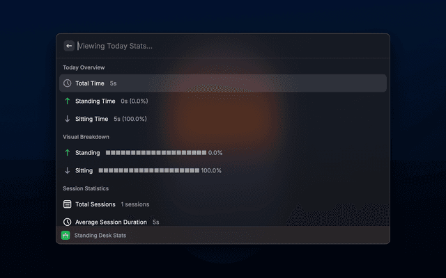 - View Stats: Open "Standing Desk Stats" to see detailed statistics for different time periods