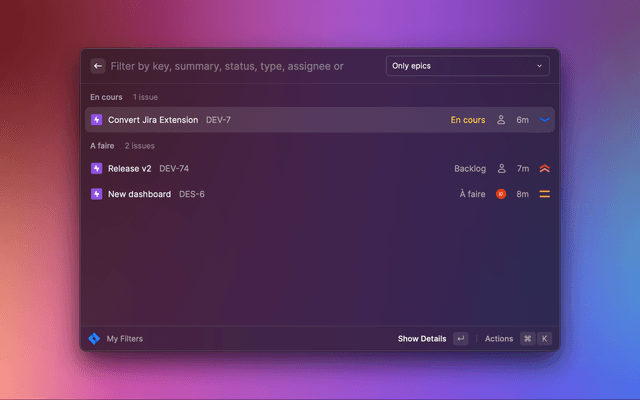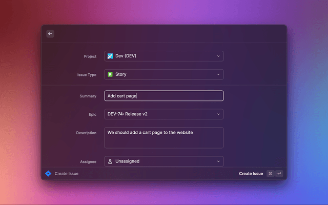 ⌘ + K and scroll down to Configure Extension. Enter your email, API token, and Jira site URL (without https://) on the right. Note that all three must be provided to use API tokens.You can change the default Git branch name in preferences; the following keys are available: