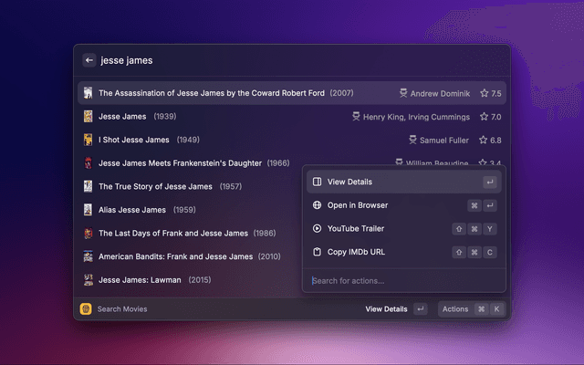 A Raycast extension that lets you easily open your favorite film or tv series on IMDb.