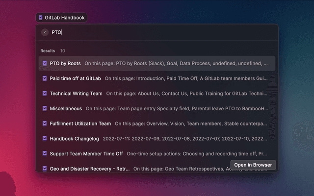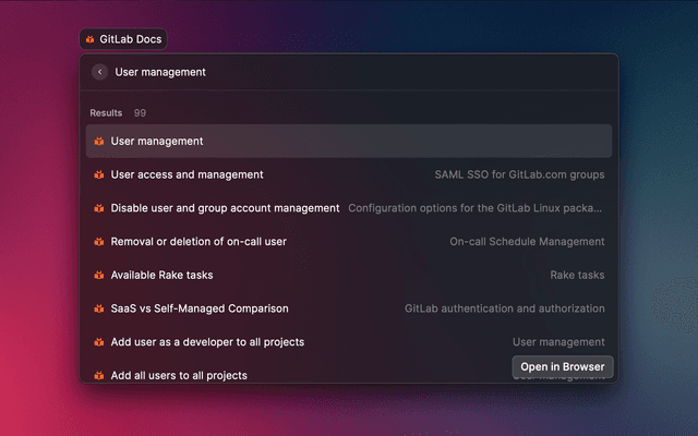 Raycast extension to search GitLab Docs, Handbook & Pajamas Design System.